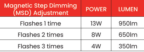 To adjust wattage, place magnet in the area just above the etched line on the right side (with the fixture facing away from you)