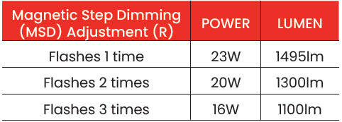 To adjust wattage, place the magnet in the area just above the etched line on the RIGHT side (with the fixture facing away from you)and hold for 1.5 seconds. Light will flash if successful.