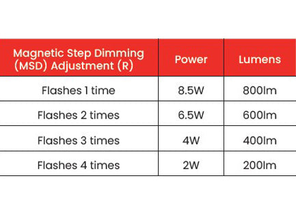 To adjust lumens/wattage, place magnet on top of the etched line on the right side (with the fixture facing away from you) and hold for 1.5 seconds. Light will flash if successful. To adjust again, repeat, pausing for 1.5 seconds in between settings.