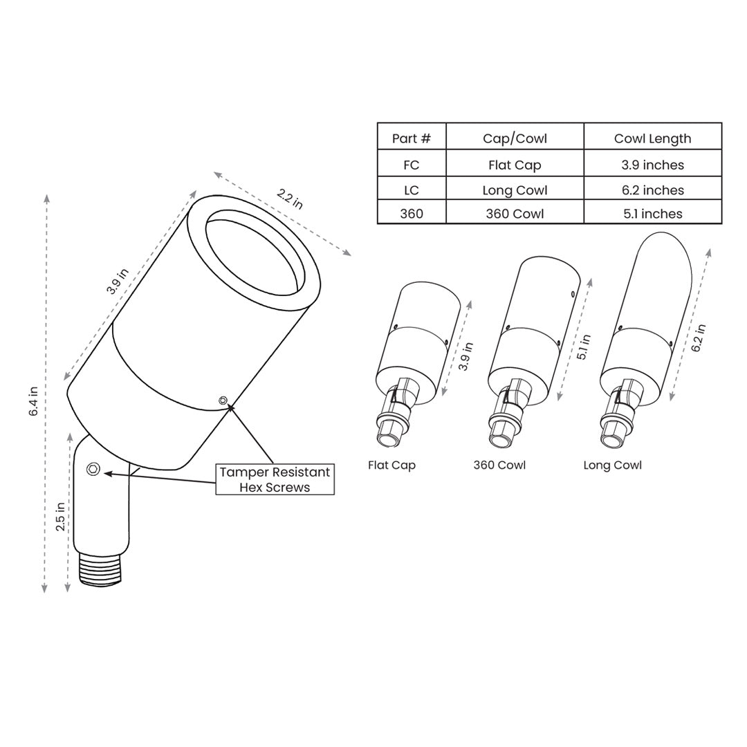 Optional Long Cowl and 360 Cowls are also available, as accessories, which also accept 2 media each (1 lens, 1 louver).